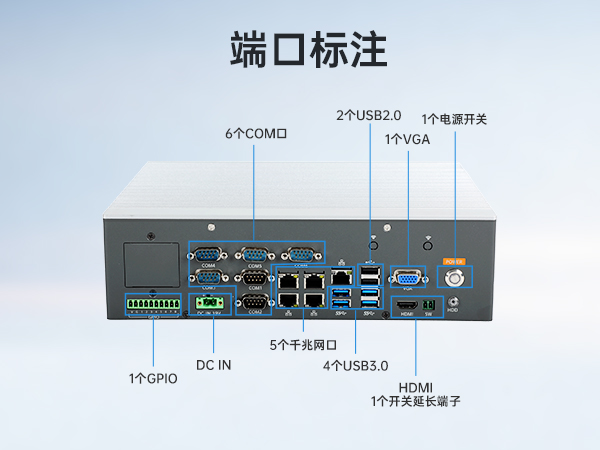 東田工控DTB-3065-H110是一款嵌入式無風扇迷你工控機,體積小巧。采用了酷睿8/9代處理器,內存為2*DDR4,支持至高32G;配置6個COM口,10個USB口,5個千兆網口,雙顯示接口,擴展性強,支持定制。